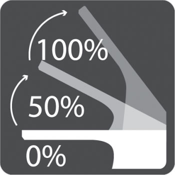 Với cần gạt nước có 2 mức độ điều chỉnh lưu lượng: Từ 0% – 50% và từ 50% – 100% giúp cho việc tiết kiệm nước dễ dàng hơn