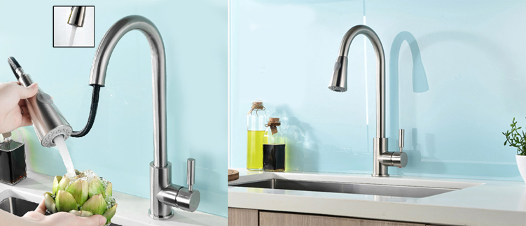 Chiếc vòi nước rút dây vừa có thể để vòi cố định như bình thường, vừa có thể rút đầu vòi ra, phun rửa tại các vị trí phía xa hơn, khá tiện lợi. Đặc biệt đối với các căn nhà bếp hiện nay, những bồn rửa chén bát thường được các gia đình lựa chọn là bồn rửa chén 2 ngăn, diện tích sử dụng rộng hơn, đối với các loại vòi nước thông thường khó có thể xả nước thoải mái, đúng nhu cầu của người sử dụng.