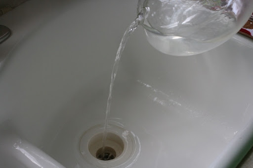 Bước 3: Đổ trực tiếp vào lỗ thoát chậu rửa đến khi nào nước tràn lên thì ngưng