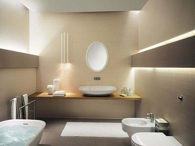 Mặc dù không được đánh giá cao như phòng khách hay nhà bếp, nhưng phòng tắm vẫn phải được bố trí ánh sáng đầy đủ, đặc biệt là ánh sáng tự nhiên. Tốt nhất nên bố trí phòng tắm ở nơi có cửa sổ hoặc mặt thoáng nhất của ngôi nhà để tận dụng ánh sáng mặt trời hiệu quả. Với ánh sáng nhân tạo, cần đảm bảo tỷ lệ bố trí ánh sáng theo diện tích là 4W trên 30 cm2.