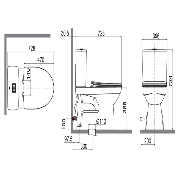 Hai mức xả tiết kiệm nước 4.8L/ 3.0L (xả đại/ xả tiểu)