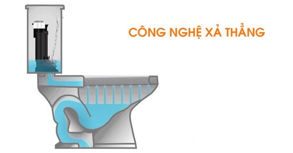 Với một số dòng bồn cầu 2 khối Inax vẫn đang sử dụng kiểu xả thẳng. Đây là kiểu xả thông thường và phổ biến nhất. Nó được ứng dụng trên nhiều mẫu bồn cầu khác nhau. Ở bồn cầu này sẽ không có con thỏ hay còn gọi là “p” trap. Chính vì vậy, việc lắp đặt cũng như vận chuyển khi sử dụng bồn cầu có hệ thống xả này sẽ tiện lợi và thoải mái hơn rất nhiều.