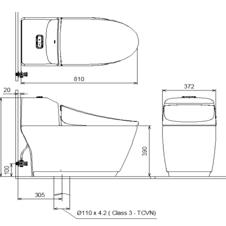 Bản vẽ bệ xí bệt Inax 1032 xả nhấn nắp êm