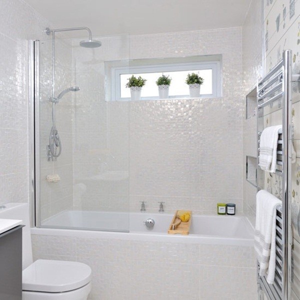 Sử dụng nội thất kích cỡ nhỏ và đặt ở góc là thiết kế tuyệt vời dành cho phòng tắm nhỏ. Bồn rửa treo tường cũng là một cách tiết kiệm diện tích và giúp phòng tắm gọn gàng hơn.