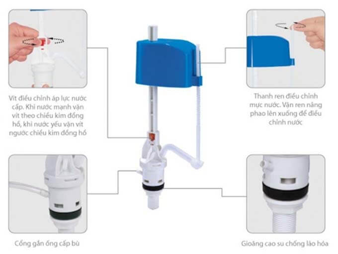 Cách chỉnh phao nước bồn cầu dạng piston nhựa
