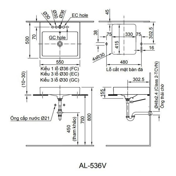 AL-536VFC: Chậu 1 lỗ