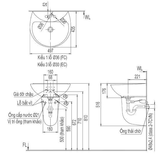L-285V: lavabo treo tường