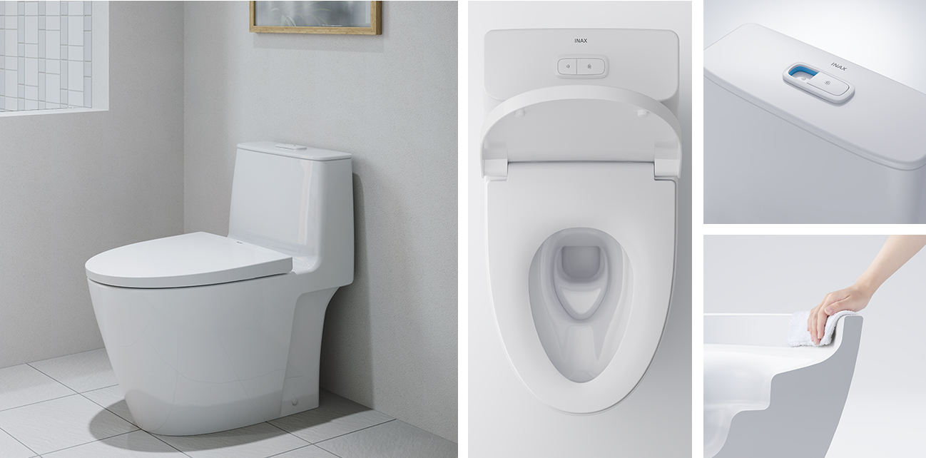Bồn cầu INAX 1 khối chính là được ứng dụng những công nghệ tiên tiến nhất nên mang đến hiệu quả sử dụng vượt trội. Nhà sản xuất INAX đã trang bị cho sản phẩm của mình các công nghệ hiện đại như PROGUARD – công nghệ chống bám bẩn, ECO – X – công nghệ tiết kiệm nước, ECO 4.5 – công nghệ siêu tiết kiệm nước hay công nghệ Hyperkilamic – công nghệ kháng khuẩn, nổi bật nhất phải kể đến công nghệ siêu trắng AQUA CERAMIC và mới nhất là kỹ thuật rửa vành RIM. Chính nhờ những công nghệ hiện đại này đã giúp bồn cầu 1 khối có khả năng chống bám bẩn và ngăn ngừa vết bẩn vượt trội, bề mặt bồn cầu luôn trắng sáng và tiết kiệm nước tối ưu.