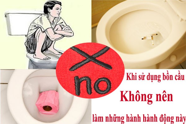 - Không đặt hai chân lên thành bệ xí