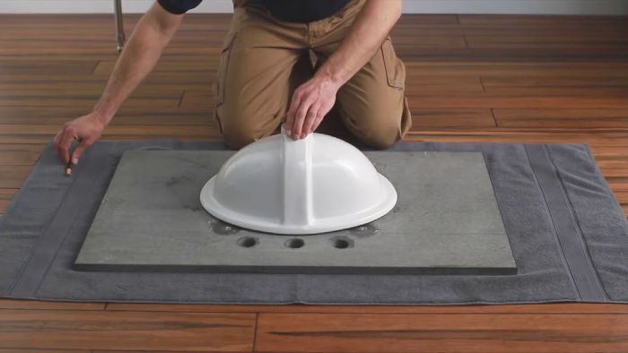 Bước 4: Lắp đặt lavabo âm lên mặt bàn