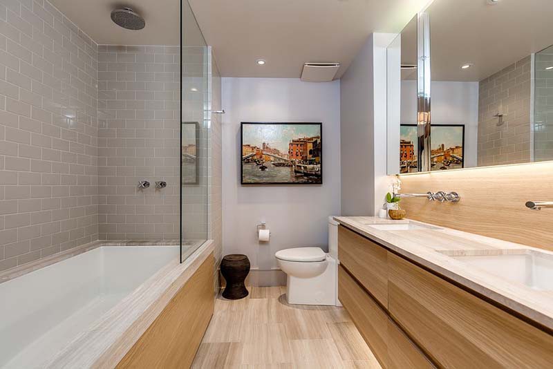 Nếu có không gian phòng tắm rộng, có thể chọn thêm tranh trang trí hoặc đồ trang trí tường khác. Ngoài ra, bạn cũng có thể chọn sử dụng gương phòng tắm có điểm nhấn để căn phòng nổi bật hơn một chút.