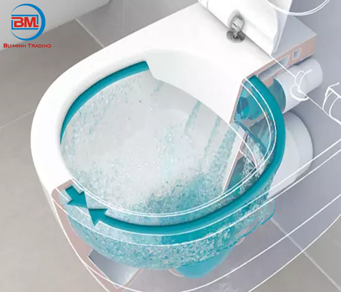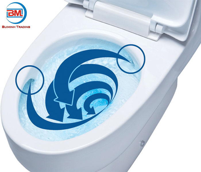 Ngoài ra, công nghệ Eco - X hiệu quả hơn khi sử dụng hệ thống 2 cửa xả kép tạo thành dòng nước xoáy mạnh giữa các bồn cầu xả sạch vết bẩn cứng đầu không gây tiếng ồn.