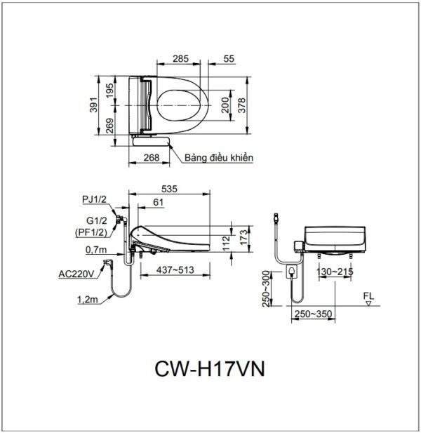 Nắp bàn cầu điện tử Inax CW-H17VN