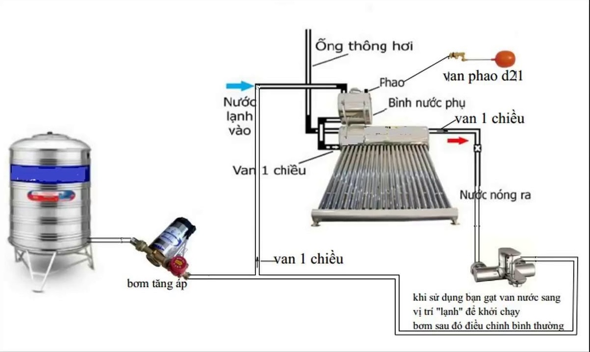 - Lắp đặt bồn chứa nước ở tầng cao nhất sẽ tạo áp lực nước tốt nhất hoặc dùng bơm tăng áp sẽ khiến cho áp lực nước cao và vòi hoa sen chảy mạnh hơn.