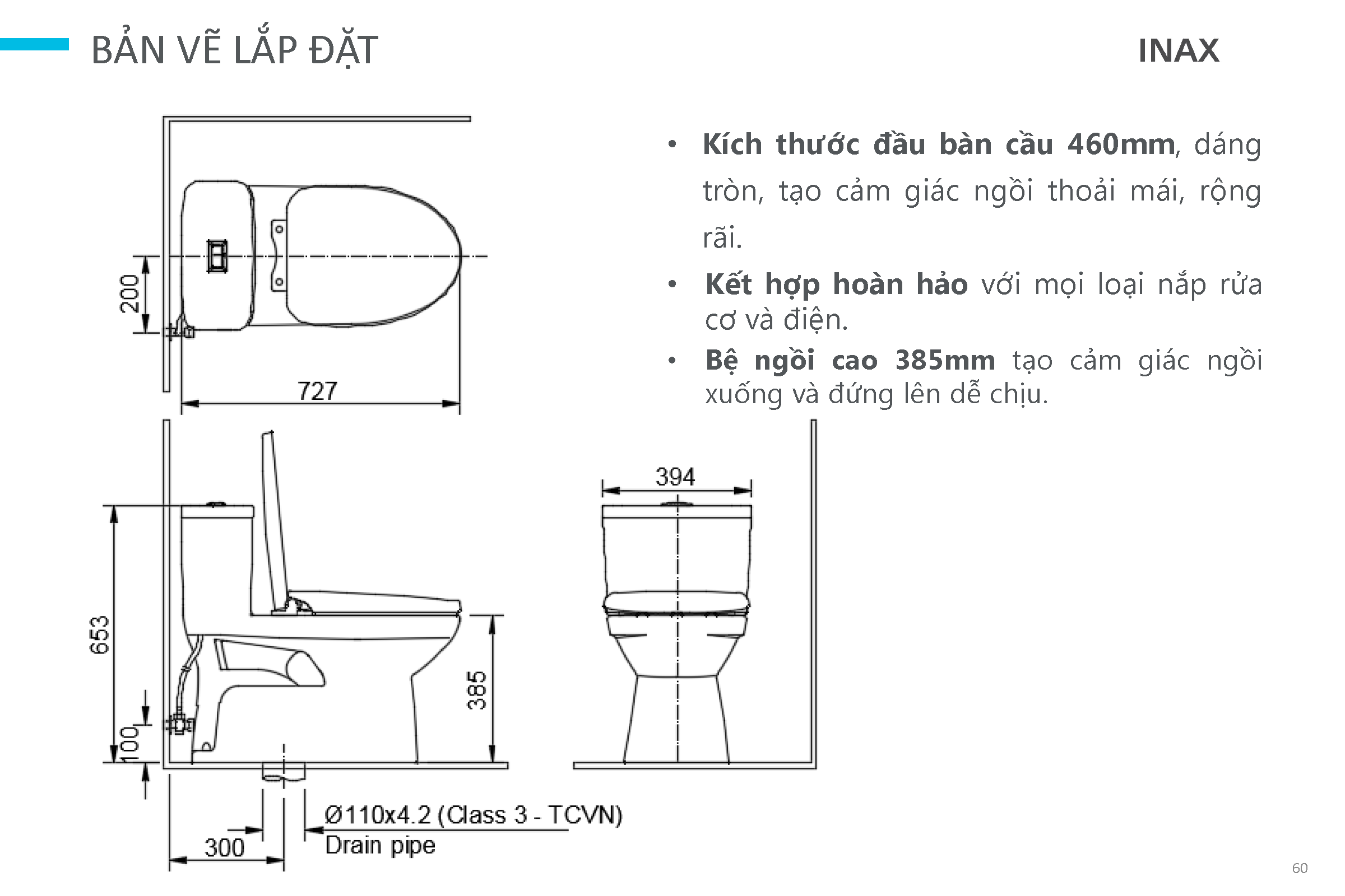 Thiết kế một khối với chân cầu nâng cao và không lộ đường ống thải. Đẹp mắt và dễ vệ sinh.