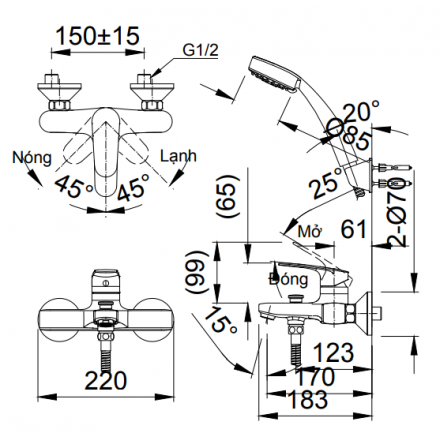 Áp lực nước : 0.05 MPa ~ 0.75 MPa