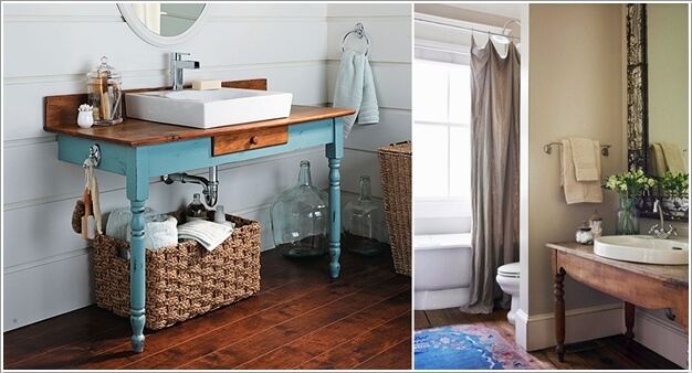 Một chiếc bàn cũ cũng tạo ra phong cách riêng cho bồn rửa mặt trong phòng tắm.