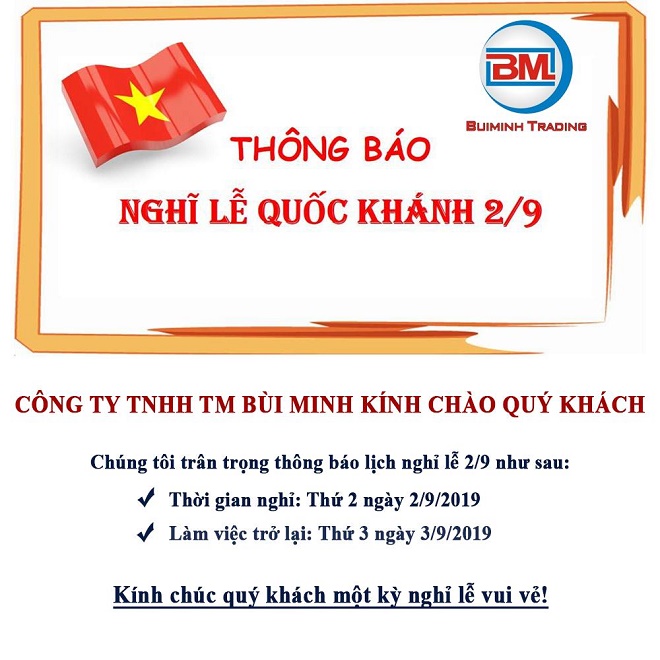 Để thuận tiện trong kế hoạch làm việc giữa Bùi Minh và Quý khách hàng, chúng tôi xin thông báo lịch nghỉ lễ 2/9 như sau: