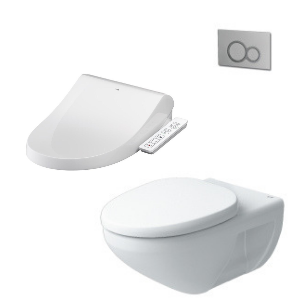 Được tạo thành bởi bồn cầu treo tường Inax AC-23PVN và nắp điện tử CW-H17VN, với thiết kế đẹp mắt vừa tối ưu không gian vừa tăng thêm tính sang trọng và hiện đại cho phòng tắm.