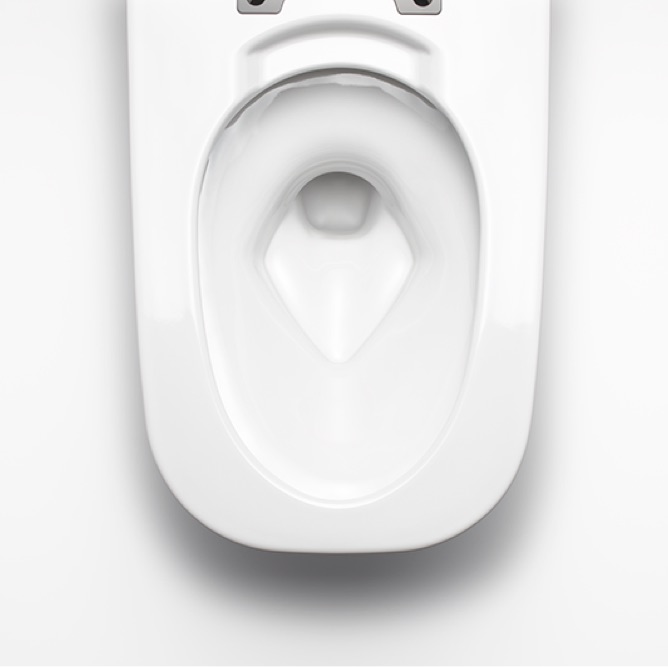 - Kỹ thuật xả rửa vành Rim, lỗ xả nước hướng vào phía trong, thêm một cửa xả lớn làm tăng sức mạnh xả rửa và xóa đi vệt nước trong lòng bầu.