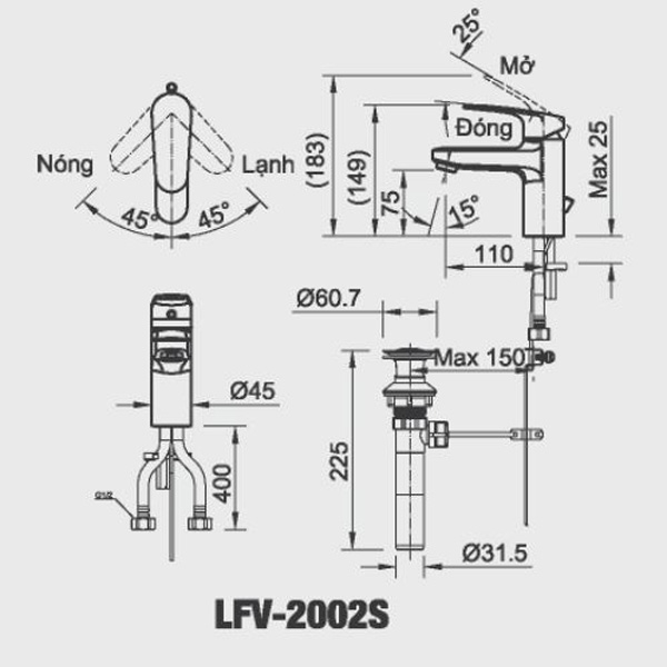 - Áp lực nước : 0.05 MPa ~ 0.75 MPa